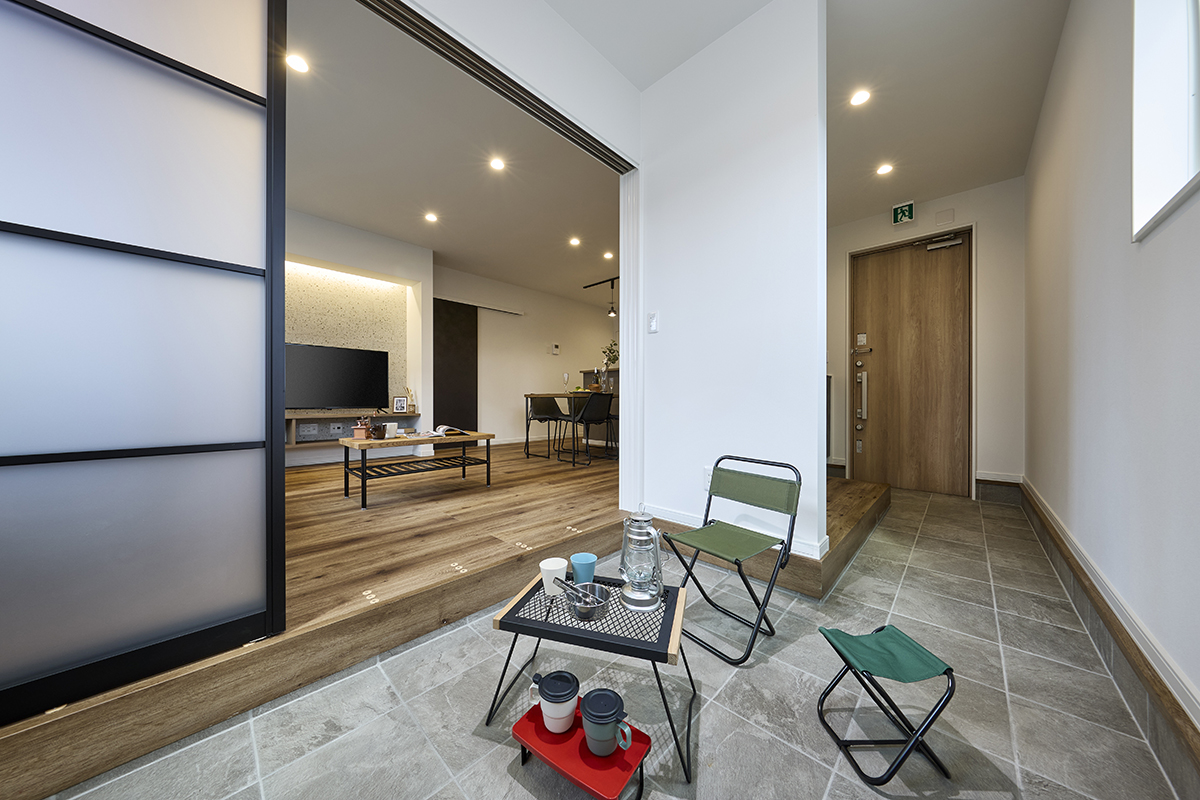 ◎玄関と続き間で靴のまま使用できるペットやアウトドア趣味のスペースにピッタリな