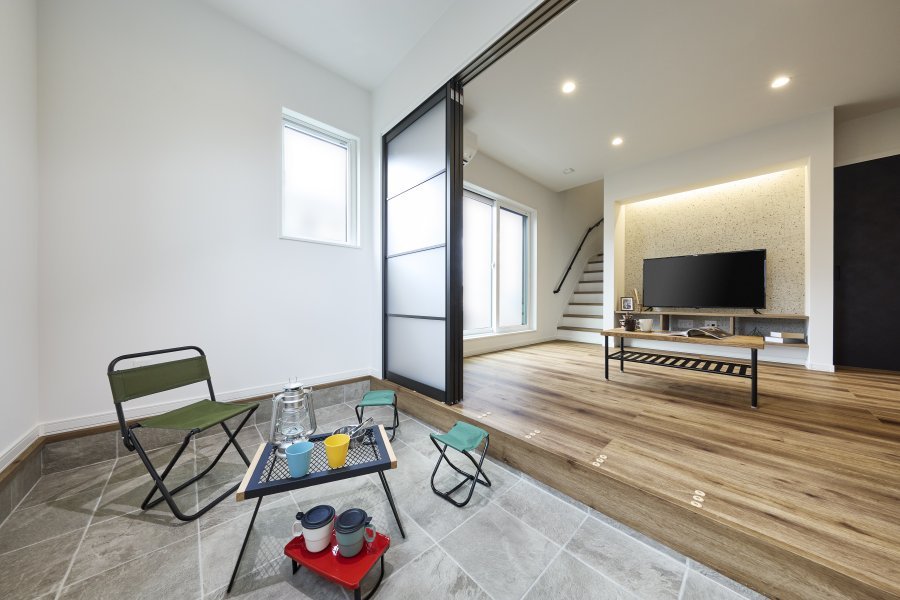 アウトドア用品や可愛いペットのグッズまで全部しまえる土間収納プランもご用意。