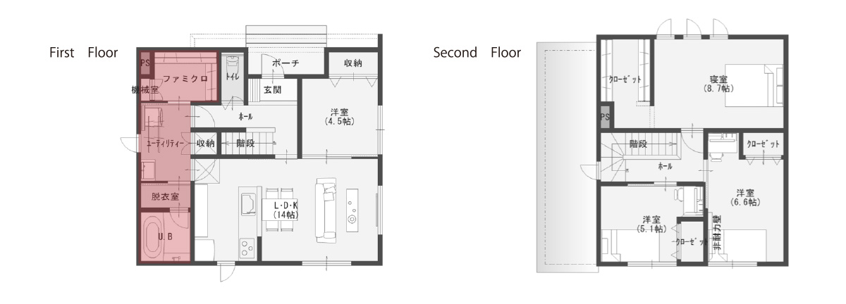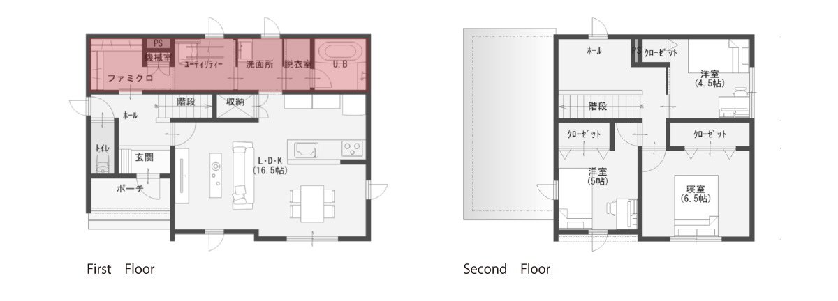 1階にファミクロのある、毎日つかう動線が一直線のプランです。