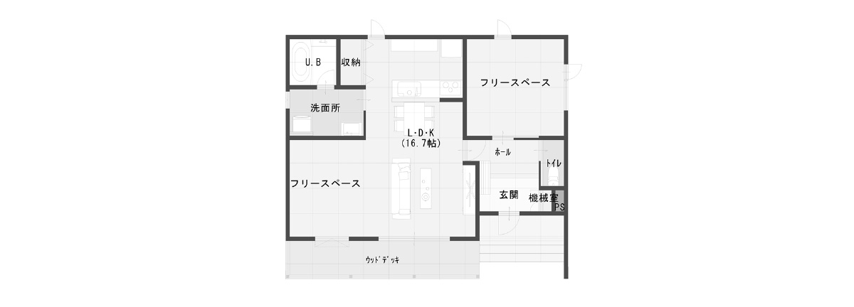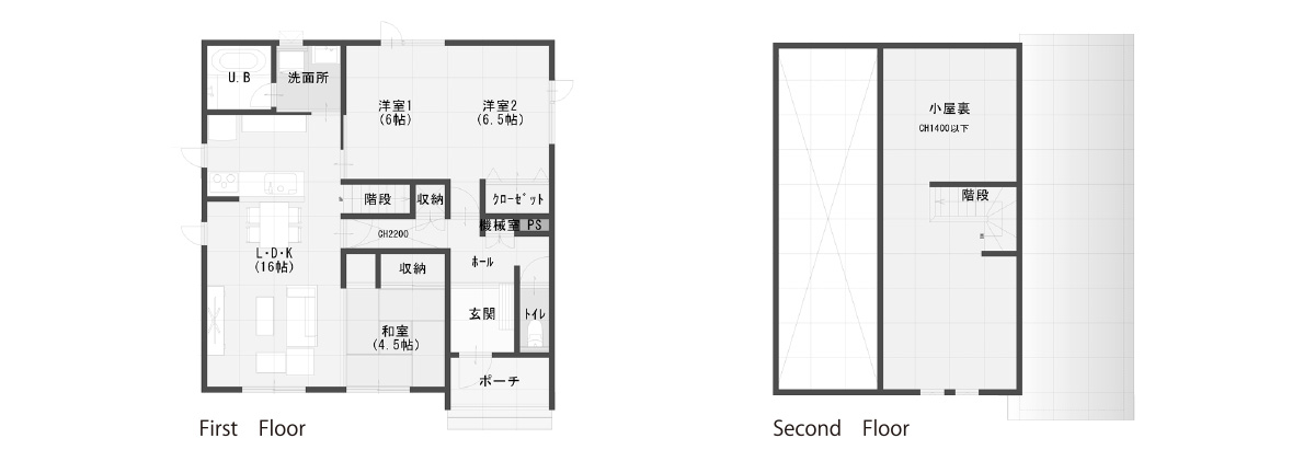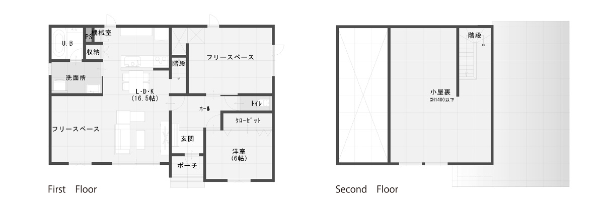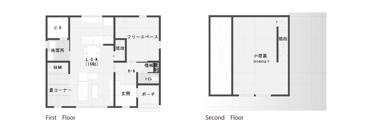 小屋裏空間を利用したプラン。梯子ではなくしっかりと階段がついているのが特徴的。収納スペース、書斎、キッズスペースなど生活スタイルの変化とともに使い方も自由自在。ちょっと余裕のあるスペースが欲しい方におすすめです。