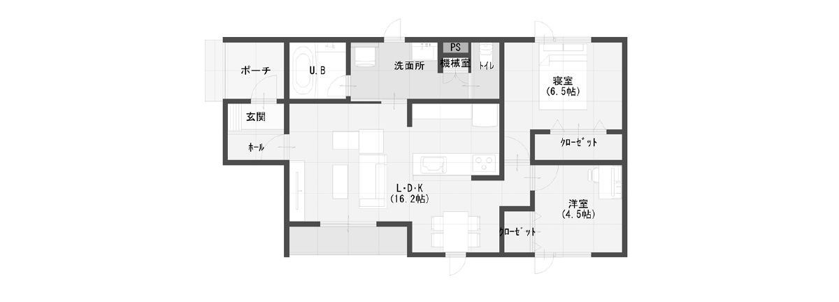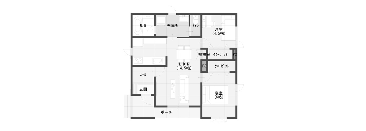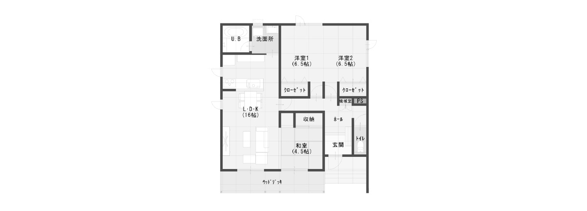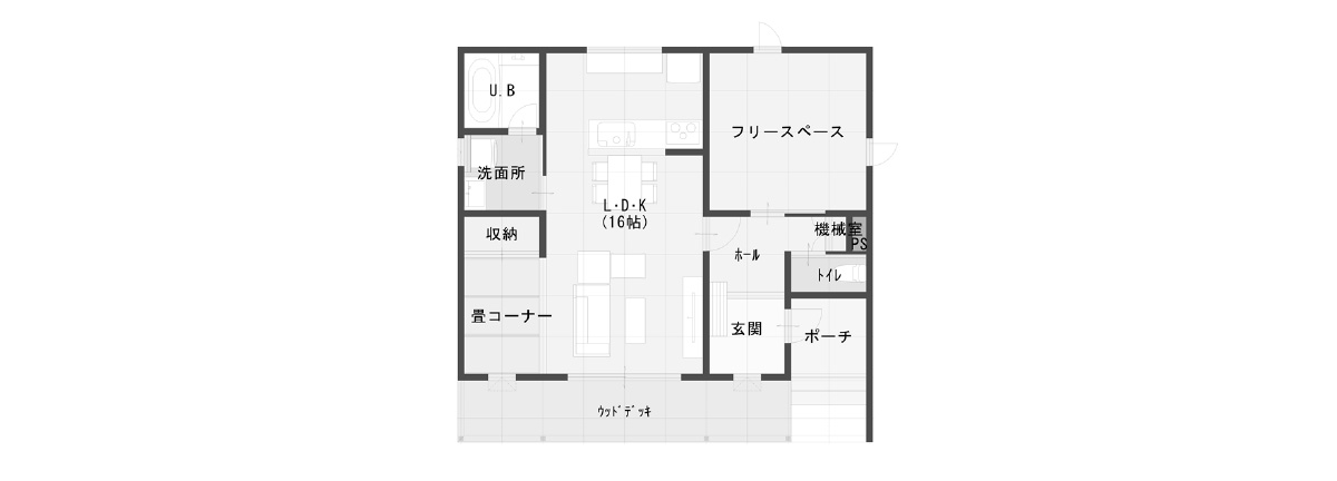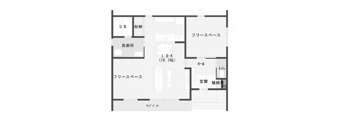 シャープなラインが美しい片流れ屋根のプラン。一面が広く太陽光パネルの設置にも適しているので、デザイン性とエコな暮らしを両立したい方におすすめです。