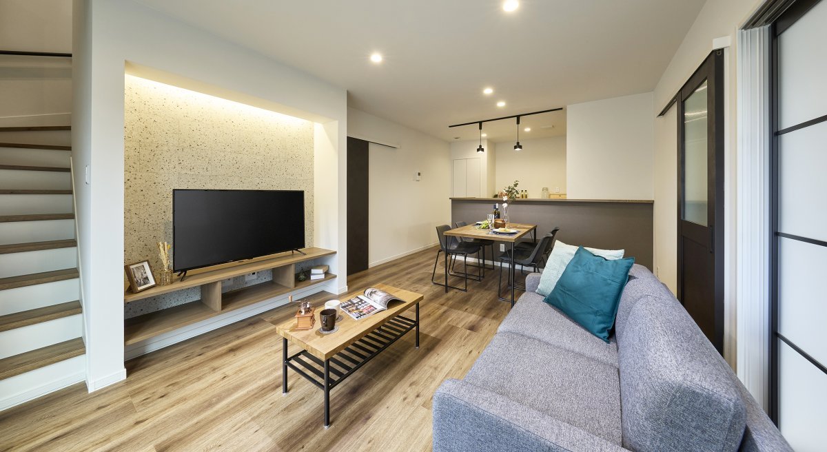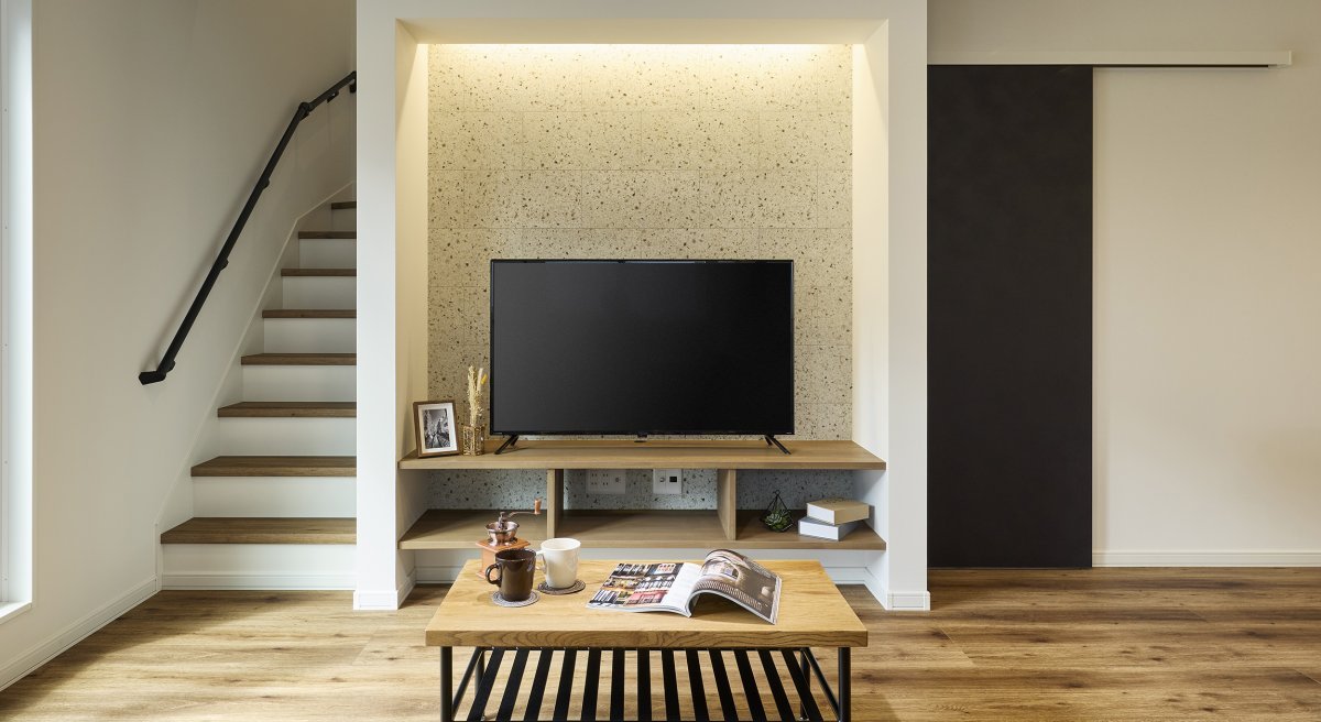 間接照明が落ち着いた印象を演出する造作TVステーション