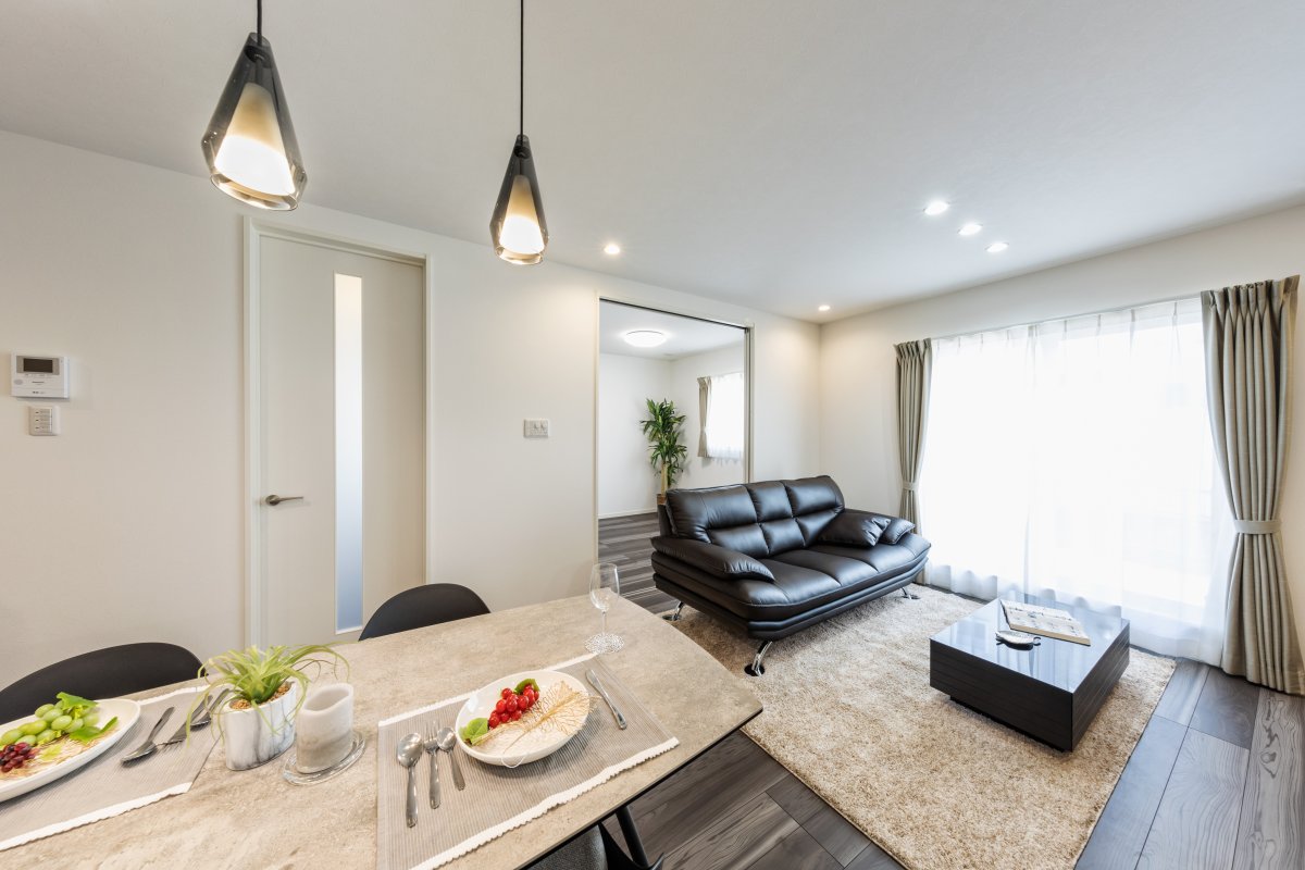 ペンダントライトの柔らかな光が、上質なリラックスタイムを優しく包み込む住まいです。