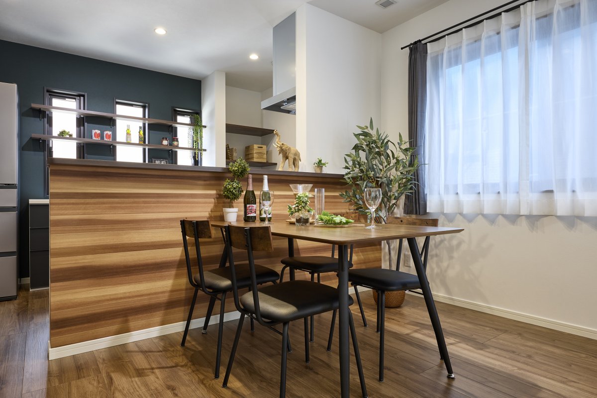 キッチンと対面配置のダイニングで、家族との会話が弾むあたたかな空間に。